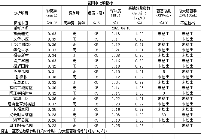 2026年4月10日管网水日常检测