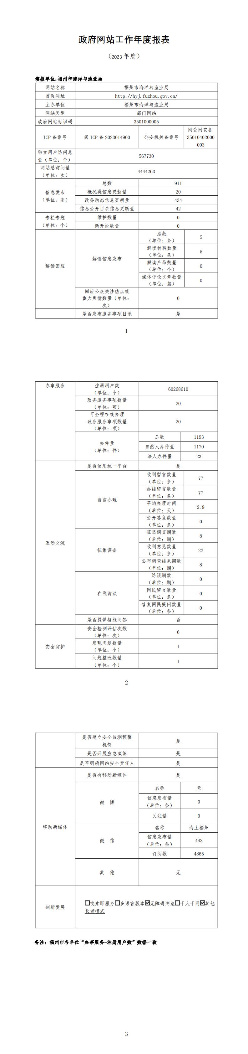 2023年度福州市海洋与渔业局政府网站工作年度报表