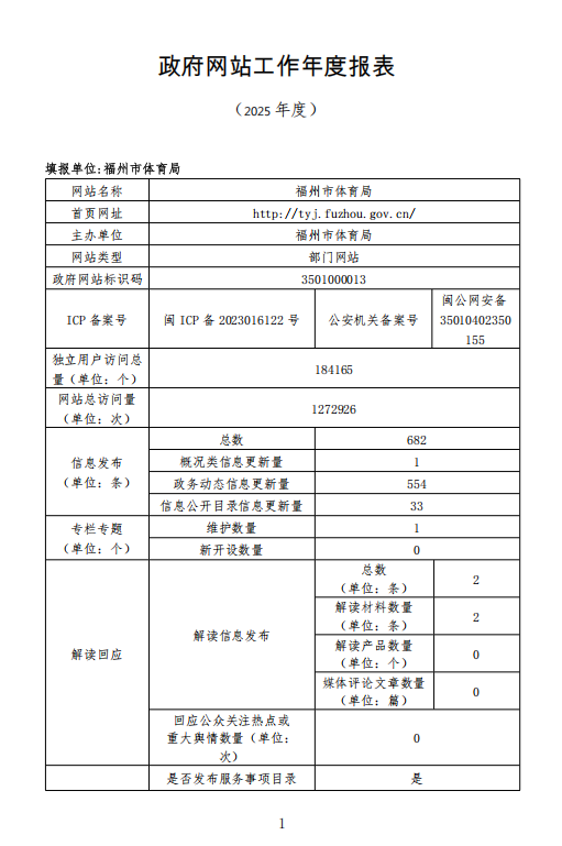 2025年福州市体育局网站工作年度报表