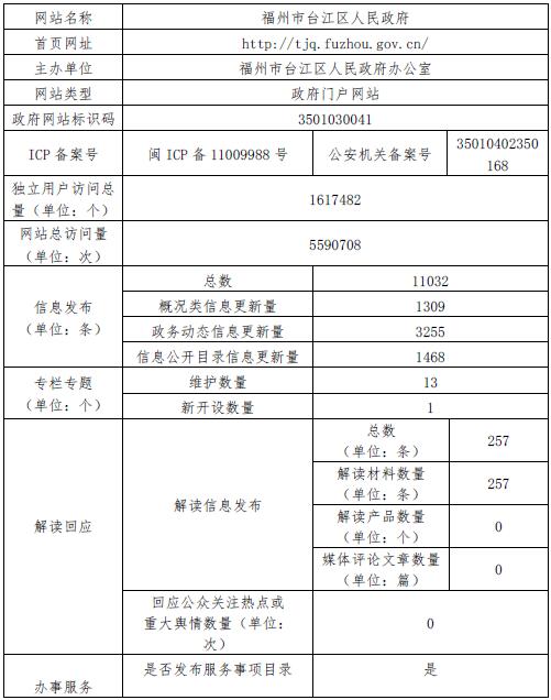 当前位置: 首页 > 政府网站工作报表 > 2017年政府网站年度报表 > 县市区政府网站工作报表 > 台江区