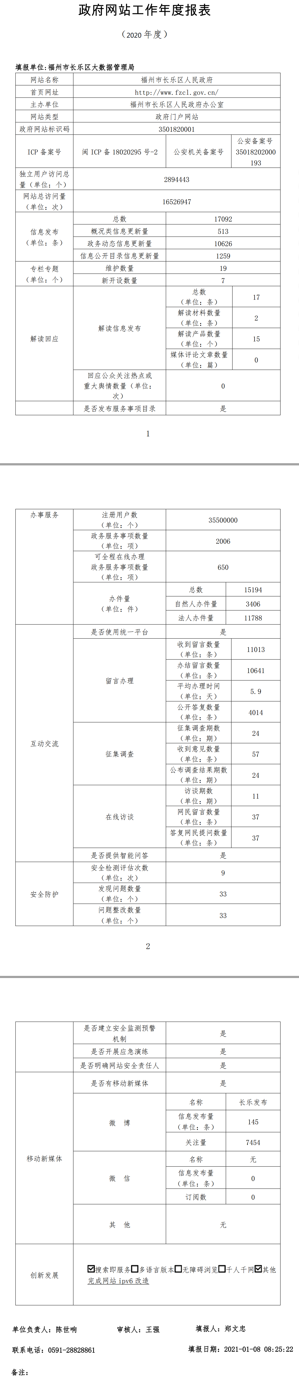 当前位置: 首页 > 政府网站工作报表 > 2020年政府网站年度报表 > 县市区政府网站工作报表 > 长乐区