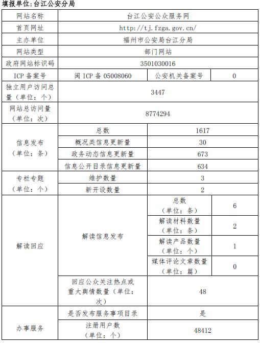 福州市公安局台江分局2017年度政府网站工作年度报表