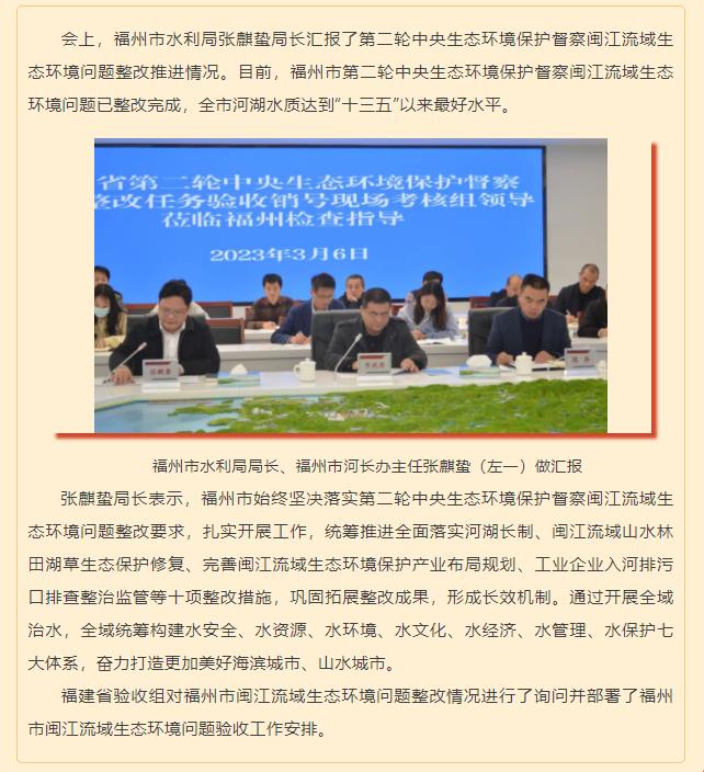 促整改见实效 第二轮中央生态环境保护督察闽江流域生态环境问题整改验收会在福州召开