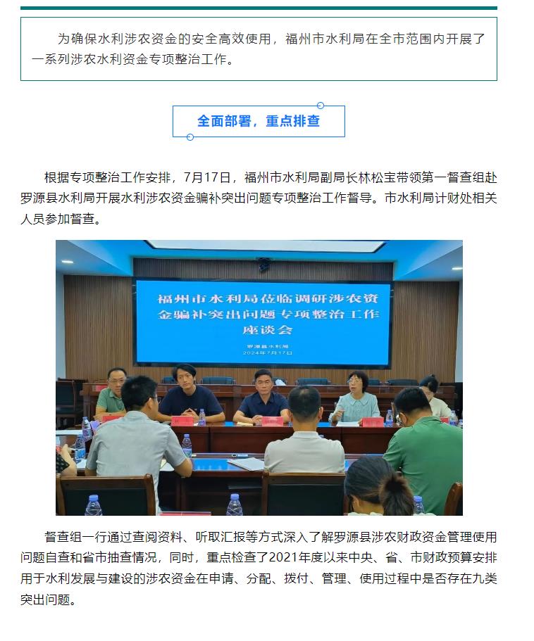 福州市水利局:涉农资金专项整治组赴罗源县水利局开展督查工作