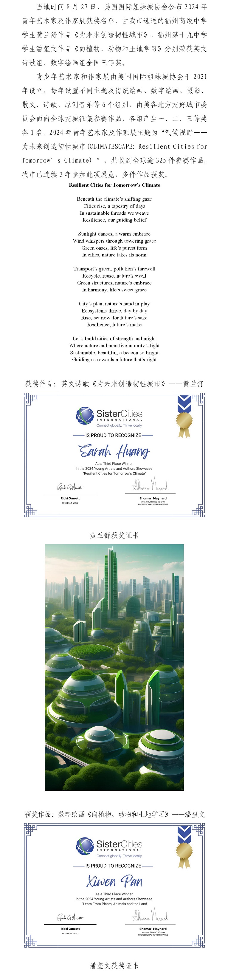 我市2项青少年作品荣获美国青少年艺术家和作家展全国三等奖