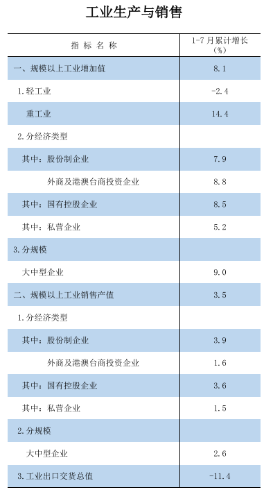 2025年1-7月工业生产与销售