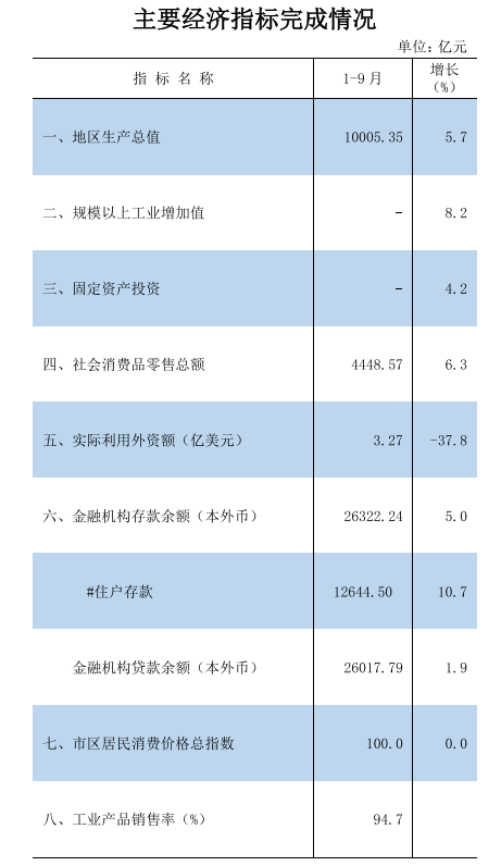 2025年1-9月主要经济指标完成情况