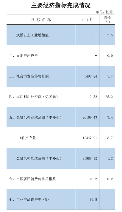 2025年1-11月主要经济指标完成情况