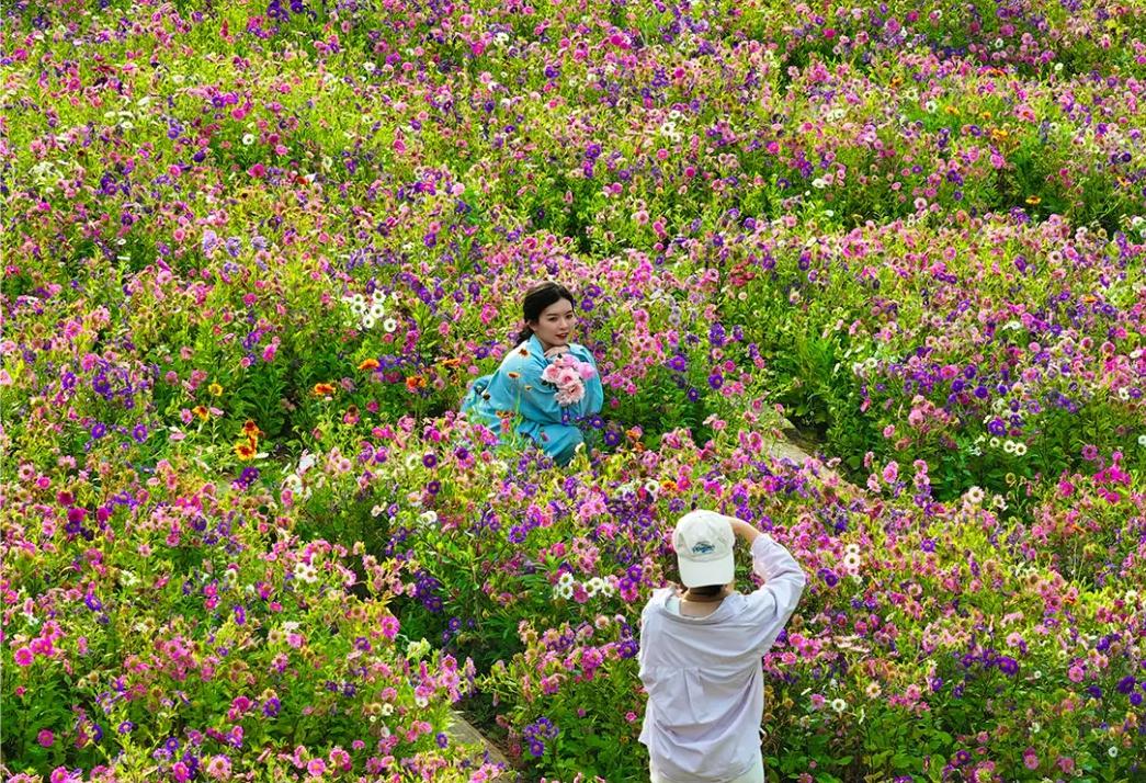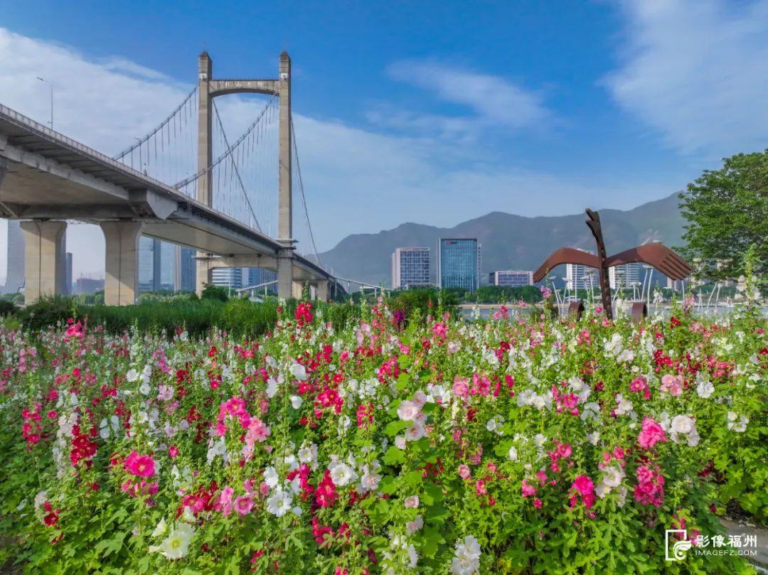 花海公园鼓山大桥下东侧,5000平方米的蜀葵迎来盛花期,湿地人家与“樱花堤”水塘边,8000平方米的金鸡菊迎风摇曳,翠菊、中国石竹等花卉也竞相绽放,多姿多彩,扮靓公园景色。