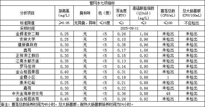 2025年9月11日管网水日常检测