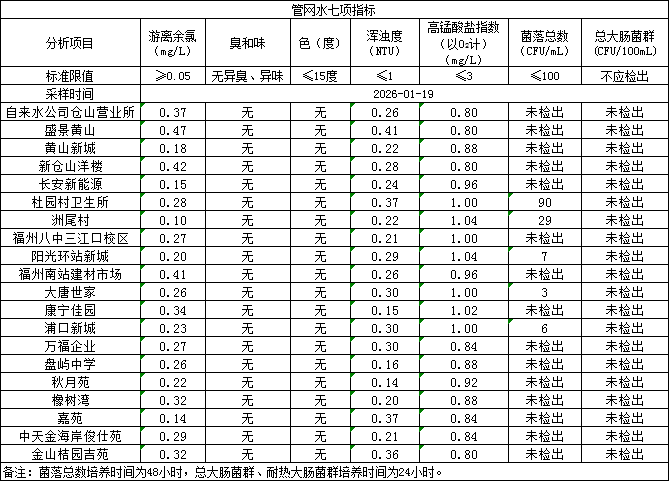 2026年1月19日管网水日常检测