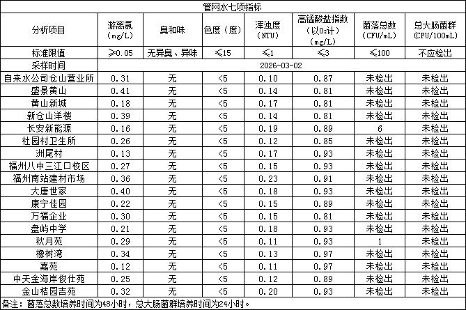 2026年3月2日管网水日常检测