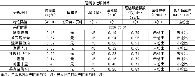 2026年3月4日管网水日常检测