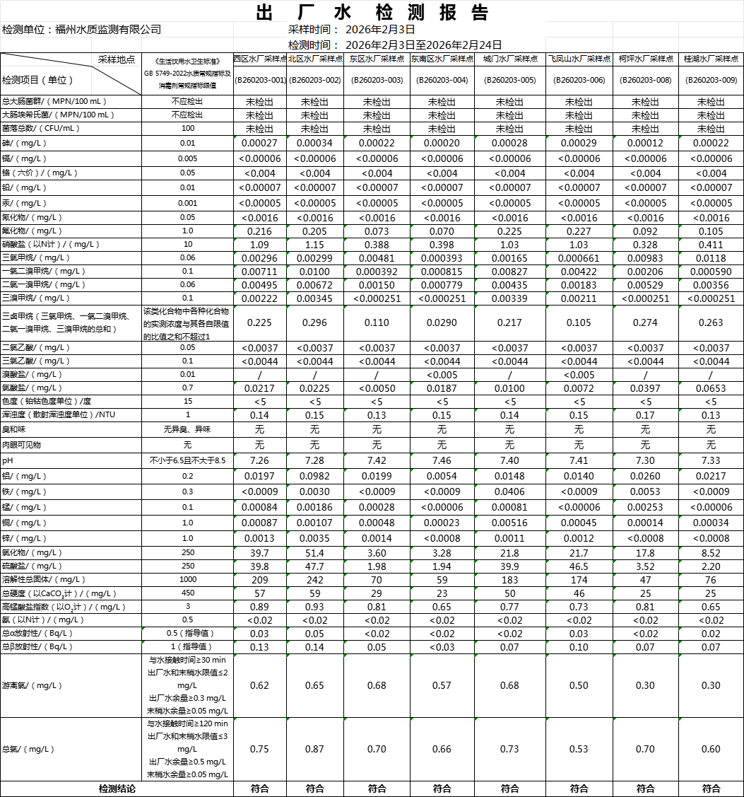 2026年2月份水质公告