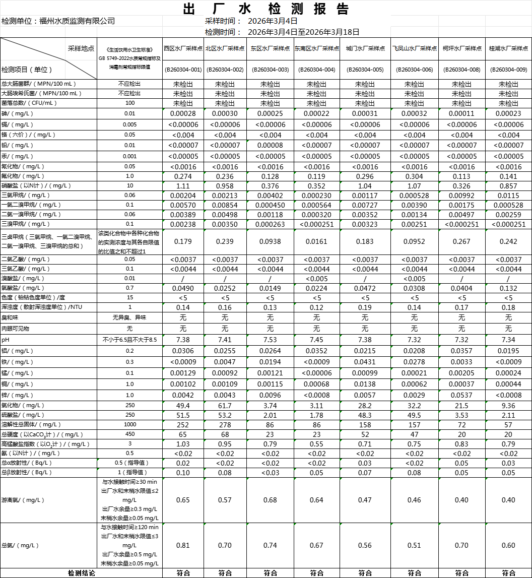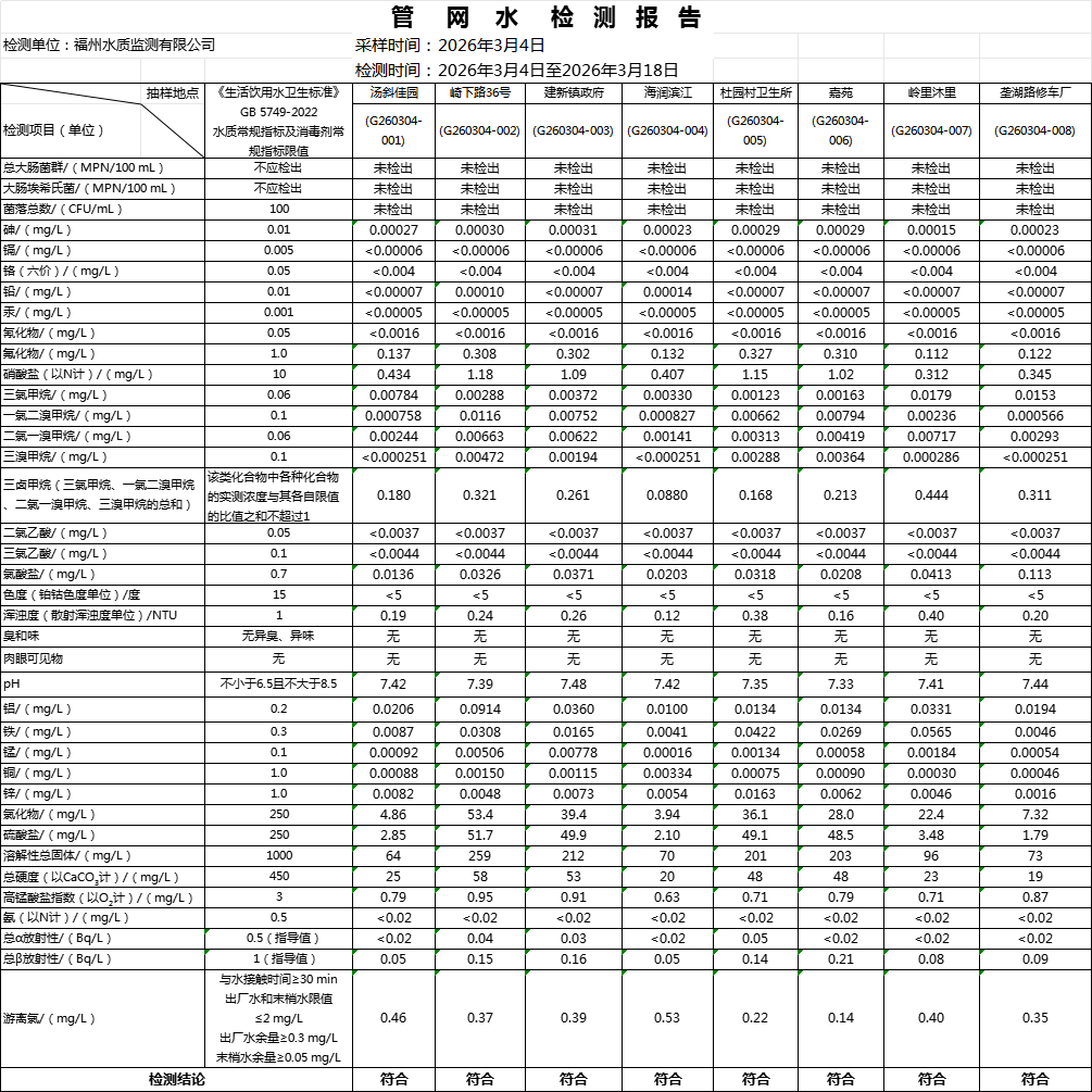2026年3月份水质公告