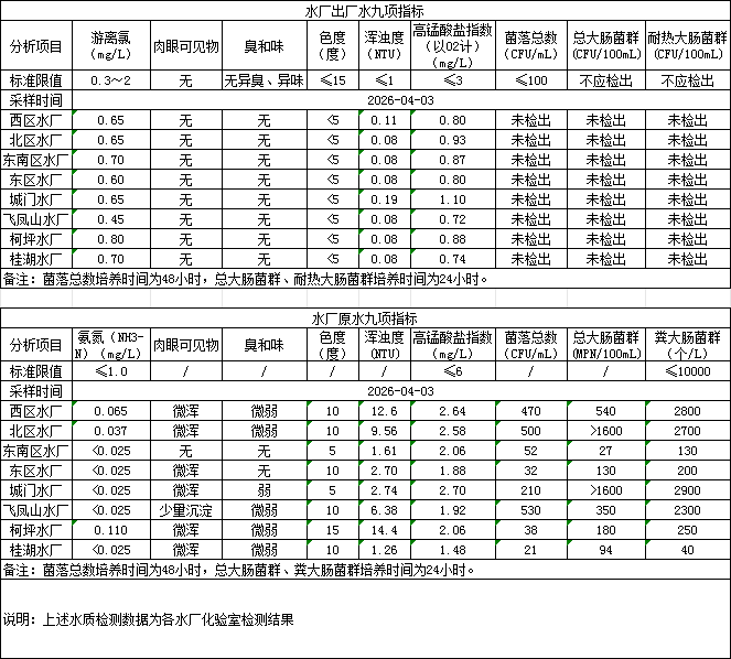 2026年4月3日供水水质信息发布
