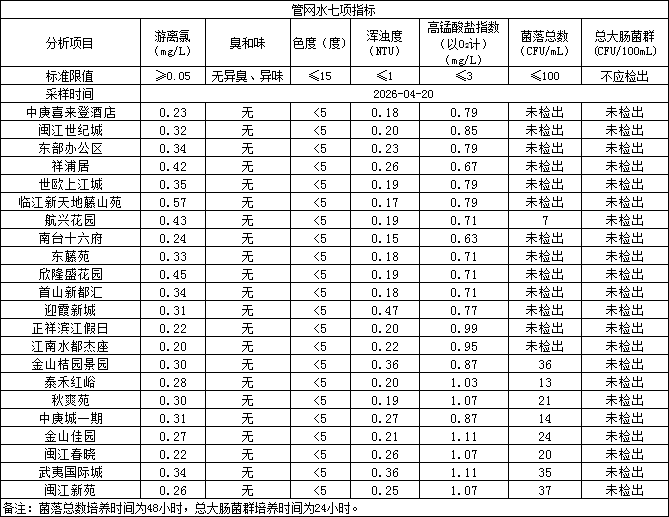 2026年4月20日管网水日常检测