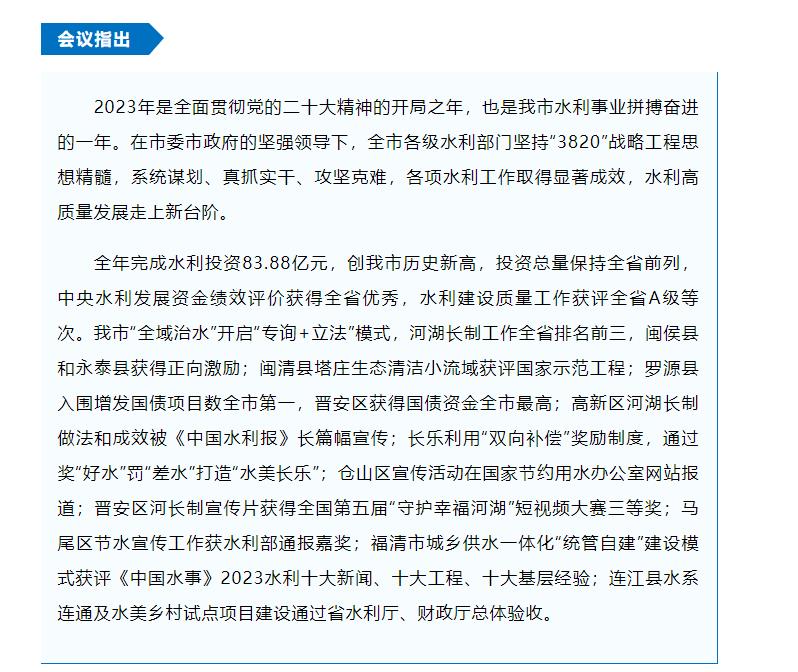 2024年全市水利工作暨第一季度水利建设投资推进工作视频会议召开