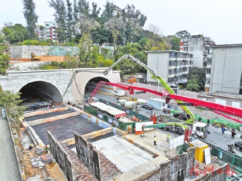 据介绍,象山隧道拓宽改造工程是全国首座不断交通城市四联拱隧道原位扩建为上下两层小间距大断面隧道工程,也是全市首个双层隧道工程。得益于项目全体人员的辛勤付出,这个全年“上紧发条”的重点项目,已基本啃完施工“硬骨头”,正朝着今年国庆前建成通车的目标加速冲刺。
