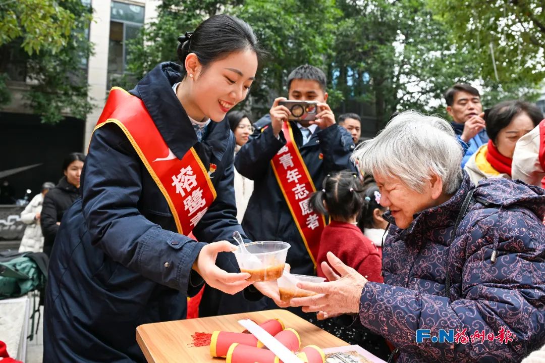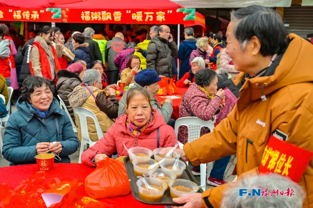 在台江鳌峰社区,舞蹈、闽剧、评话、古典舞、诗朗诵、葫芦丝合奏等精彩节目轮番上台,为观众带来一场视听盛宴。各级道德模范、身边好人、文明家庭代表及退休老党员等共品香甜的拗九粥。现场还设置了口腔健康、中医义诊、反诈宣传、爱心义剪等多个文明实践服务摊点,志愿者耐心细致的服务受到了市民群众称赞。 在仓山城门镇濂江村,闽剧经典折子戏《招姐做新妇》《南归梦》《红裙记·堂前相认》等轮番上演,赢得在场观众的连连掌声。现场弥漫的浓郁粥香,寄托着敬老孝老的深情厚意,让辖区老人备感温暖。 在马尾新港社区,党员志愿者们将熬煮了3小时的甜咸两种味道的粥递到老人手中,共发放730份。志愿者和小学生们还拜访了16户高龄老人,送上拗九粥和节日祝福。 在连江魁龙坊历史文化街区,朗诵、歌曲、情景剧、方言唱等精彩节目轮番上演。舞台旁的义诊摊位前,医护人员耐心地为长者测量血压血糖,送上健康养生提示。活动还为在场长者们准备了鸡蛋、线面、鱼露等丰富的礼品。 在罗源县老年大学,老人们接过孩子们送上的拗九粥,脸上满是笑意。居民陈学铃说:“孩子们不仅表演节目,还亲手端来拗九粥。这粥让我想起小时候过节的味道。” 在高新区两园安置房二期(南港花园),文艺表演、互动问答、健康义诊、爱心义剪等吸引了众多群众观看、参与。“今天这活动办得很好、很热闹,让我们感受到党和政府对老年人的关心关怀。”住在两园安置房的陈依伯说。 此外,市妇联、晋安区妇联在琴亭湖公园开展巾帼志愿服务活动。各社区舞蹈队、合唱队及幼儿园小朋友们轮番上台,用歌声、舞蹈、小品、快板演绎福州传统文化,传递节日温情。