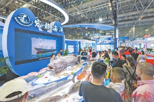 另一侧,福州宏龙海洋水产有限公司的展位前,同样挤满了举着手机拍照的观众。“我们今年带来五六十种海产品,大多是来自印尼和几大洋的稀有品种,生长在无污染环境,蛋白质丰富,肉质特别鲜美。”面对好奇的目光,展位负责人陈程热情介绍,深海鱼大多体型巨大,需要餐饮企业与加工企业进行加工,而东星斑、沙丁鱼等比较适合家庭烹饪。