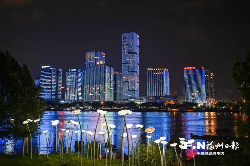 福州金融街商务区灯光秀。记者 池远 摄