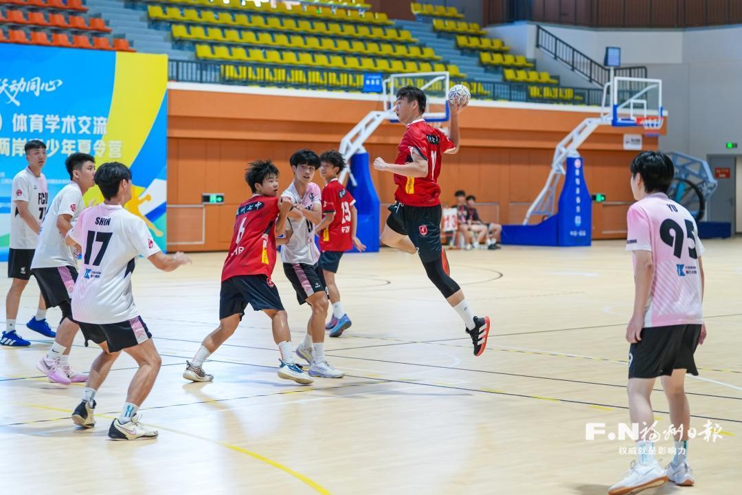 开营当日,来自台湾的两支男女手球队分别与福州七中队、金沙中学队开展友谊赛。球员们在赛场展开激烈角逐,场下则欢声笑语不断,气氛热烈融洽。“第一次来福州,我既想在场上和对手过过招,也想看一看这座城市的风采。”台湾手球俱乐部队员小许说,他对这场夏令营藏着双重期待:一是提升球技,二是拓宽眼界。