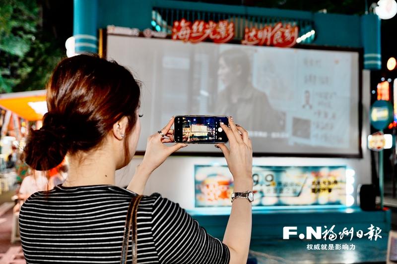 “既能看电影,又能吃遍福州美食,这种沉浸式体验太赞了!”22日晚,市民陈女士在达明美食街的露天观影区一边品尝地道福州小吃,一边向记者分享道。