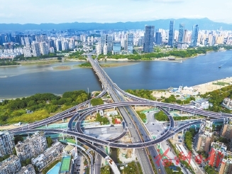 作为城区缓堵“利器”,金山大桥西互通立交与已完工的尤溪洲南立交提升改造工程、工业路(杨桥路—上浦路)提升改造工程共同组成一条快速通行的大通道,实现尤溪洲大桥、闽江大道与金山大桥之间的快速交通转换。
