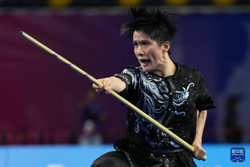 陈惠颖在女子南拳南刀南棍全能项目南棍比赛中。新华社记者 晋美多吉 摄