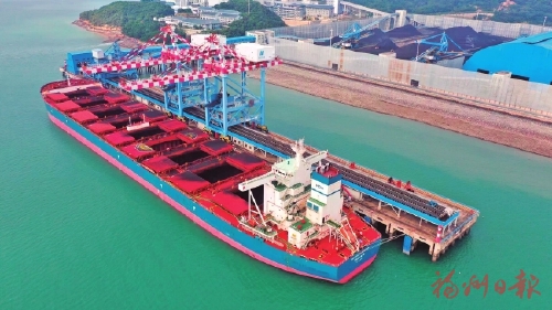 昨日,“辉煌”轮依然靠泊在罗源湾北岸将军帽码头作业区,工作人员抓紧开展煤炭卸载工作。