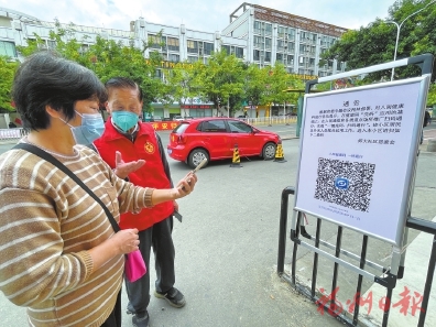 “来,扫码登记再进小区。”“大家保持距离,间隔一米,老人优先照顾。”连日来,在仓山区师大社区核酸采样点和阳光新村出入口,经常可以看到党员志愿者黄以孟服务群众的身影。
