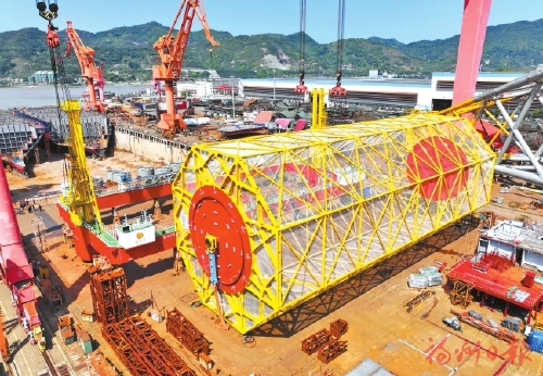 “乾动2号”深远海养殖平台下水