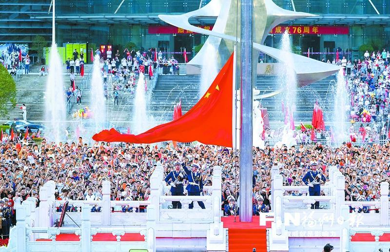 人群中,福州市晋安榕博小学四年级学生柯溢晗仰望着迎风招展的国旗,清澈的眼眸中闪烁着激动的泪光:“这是我第一次在五一广场看升旗,国旗升起的那一刻,我的心中无比自豪。我要把今天的所见所感写进日记,让这份感动永远留在心中!”