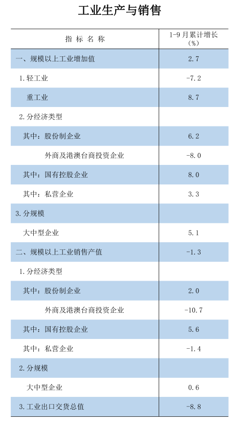 2023年1-9月工业生产与销售