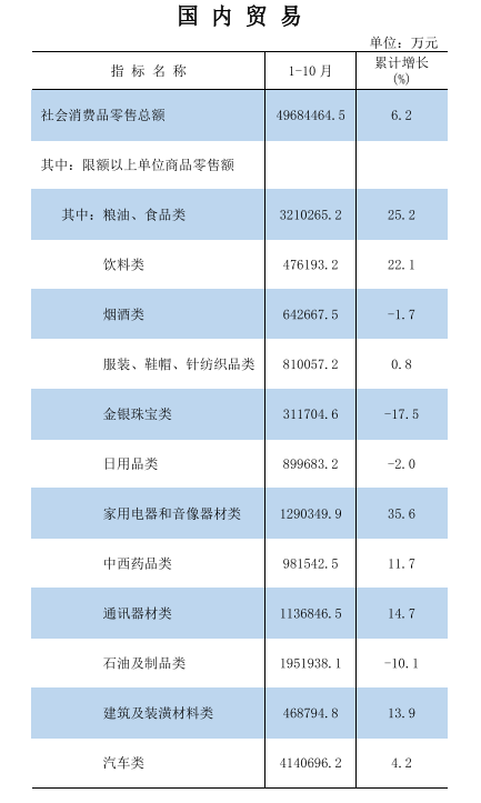 2025年1-10月国内贸易