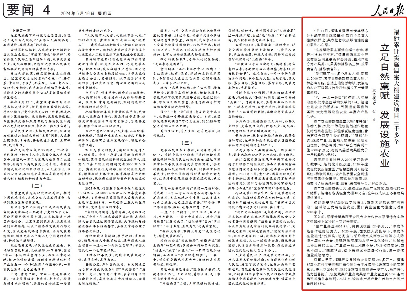 人民日报点赞!福建立足自然禀赋 发展设施农业