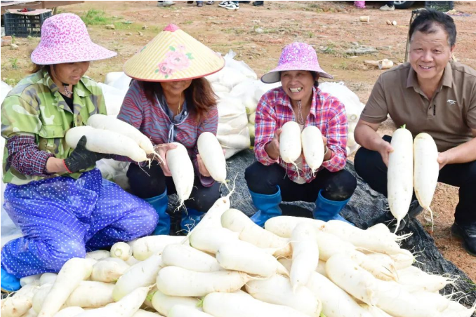 “六十天前种下的白萝卜、白菜,这两天都要收割了。一天下来,白萝卜和白菜能收2500公斤,今天起,每天都会有车来将这些蔬菜运走。”福建省久号餐饮管理有限公司法定代表人、久号食堂蔬菜种植基地负责人梁齐江说。