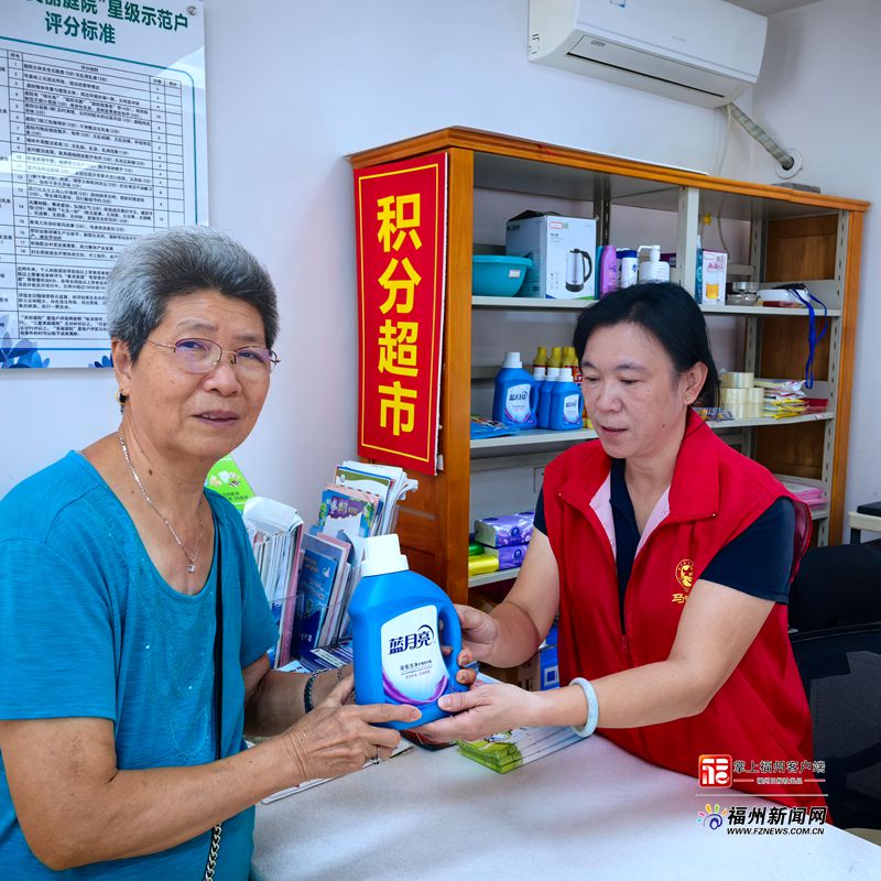 走进马尾亭江镇英屿村新时代文明实践站,便可看见这里摆放着一个特殊的货架,货架上摆放着抽纸、牙膏、洗衣液等生活用品,不同的是,这些物品不是直接售卖,而是以积分的形式兑换。