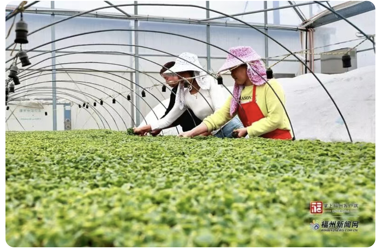 智慧大棚内,工人在拔苗嫁接。连江融媒体中心供图